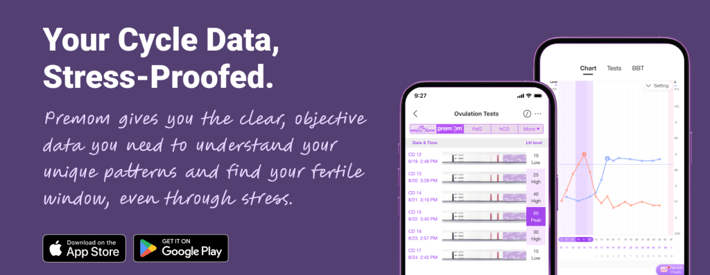 This is where accurate cycle tracking becomes invaluable. When stress affects your cycle, having objective data helps you identify patterns and adjust your timing. Premom’s cycle tracking with LH test reading and BBT charting gives you the data you need to understand your unique patterns – even when stress throws things off schedule. Instead of adding more worry by guessing, you gain confidence through clear information about your actual fertile window.