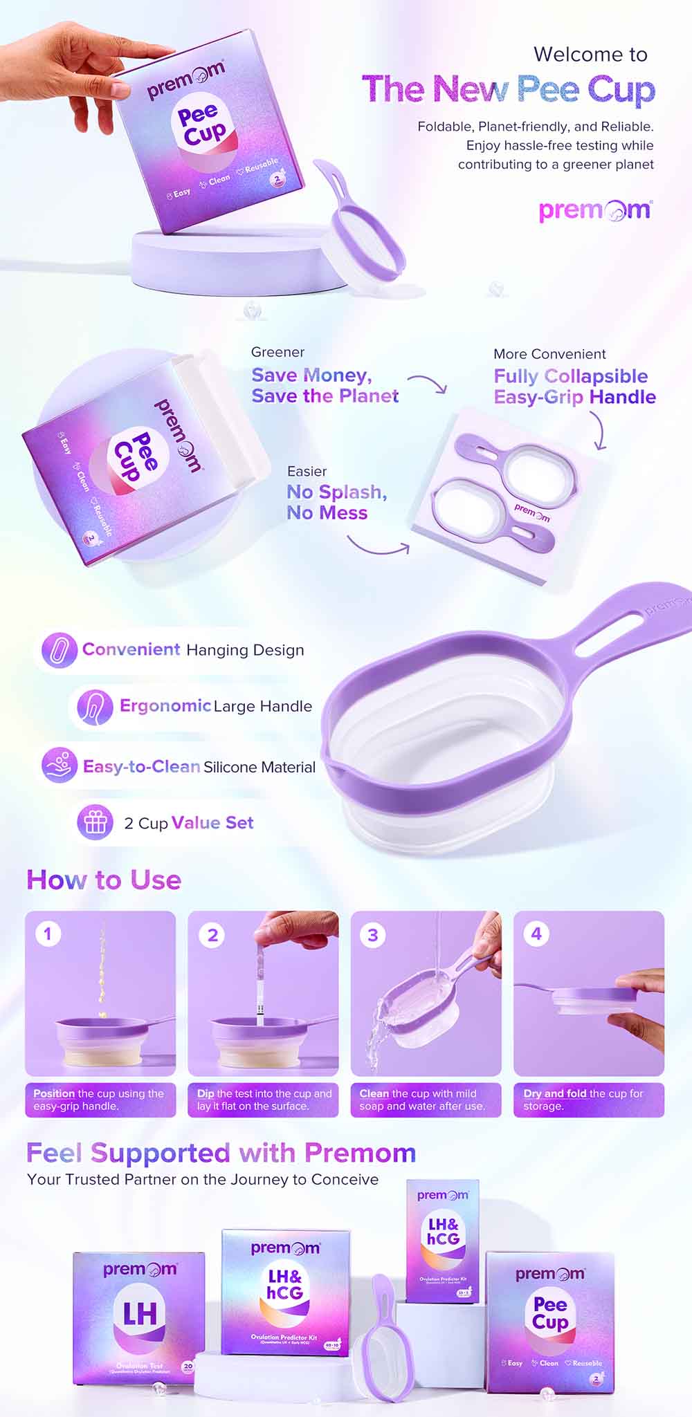 - Collapsible Design: Premom portable urine cups are compact, space-saving, and perfect for travel or home use.