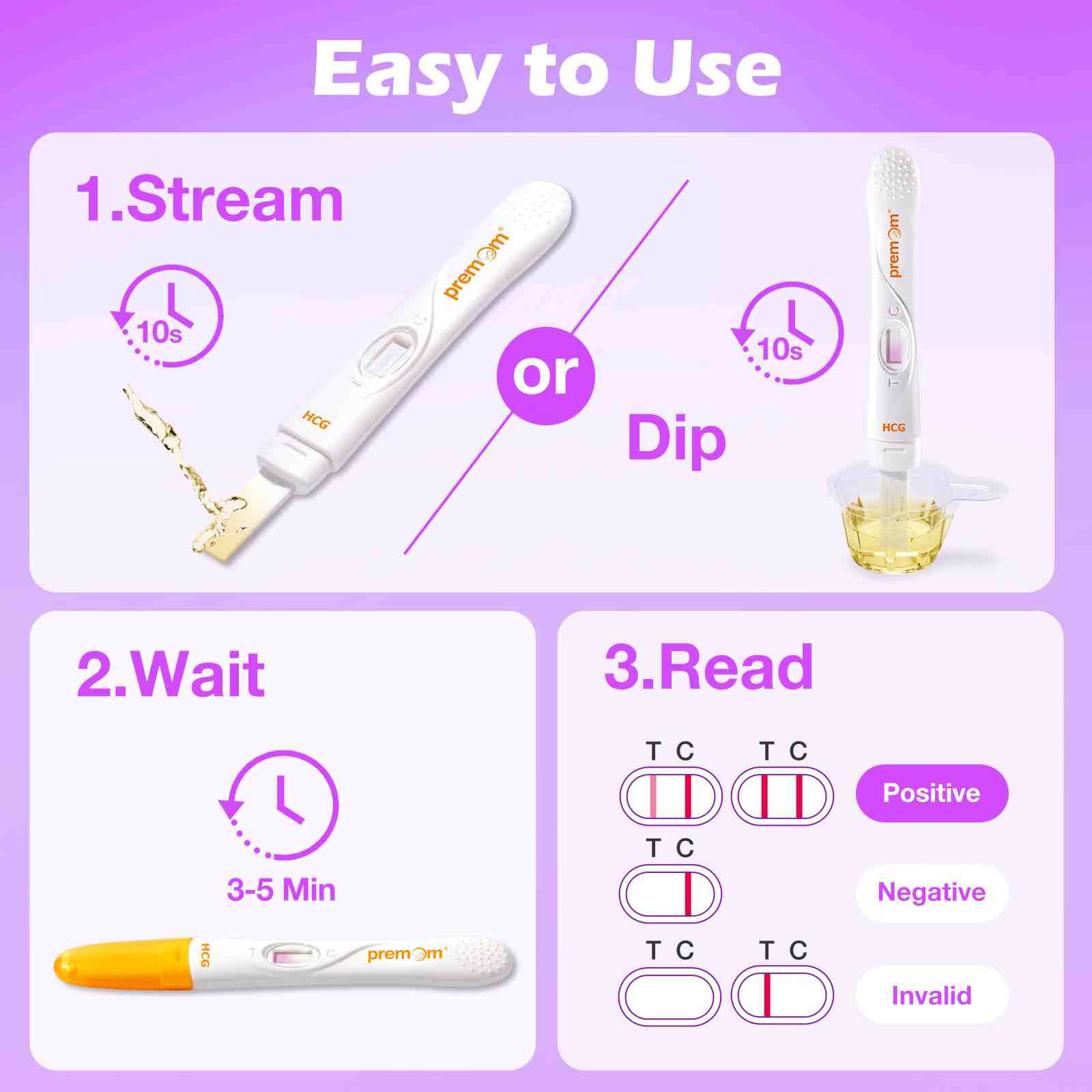 Premom pregnancy test strips and midstream tests are the same and both are used to detect pregnancy. The difference between using a midstream test over a strip test is that you can urinate directly onto the mainstream’s absorbent tip for direct urine testing. No need to use a disposable urine cup to collect your urine sample.