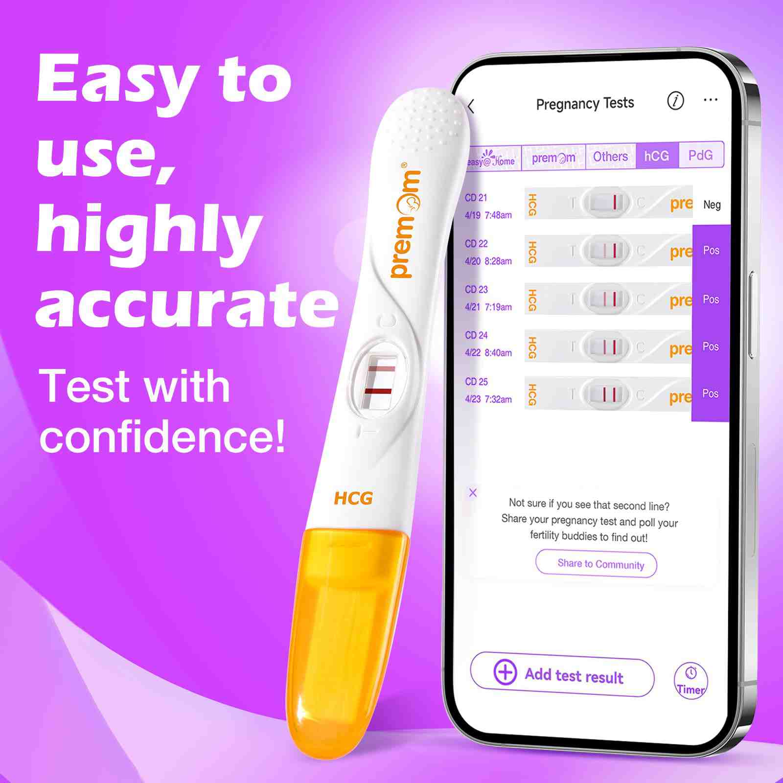 The Premom midstream pregnancy test can detect human Chorionic Gonadotrophin(hCG) in urine at the FDA recommended standard of 25 mlU/mL.